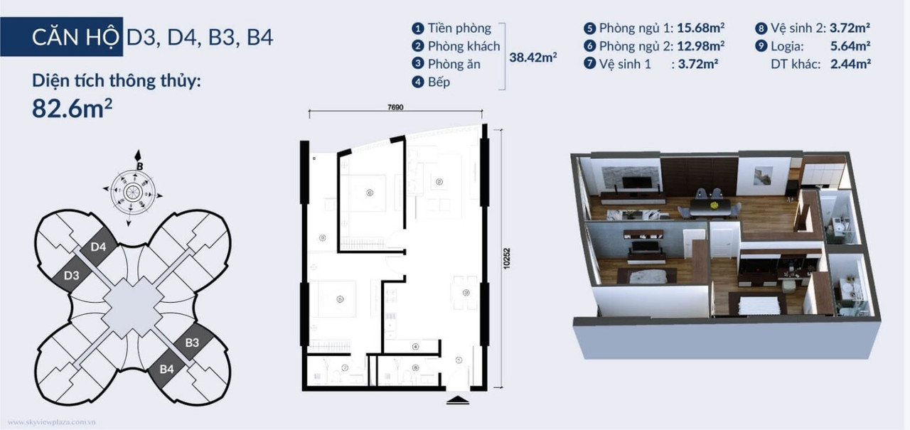 Số căn hộ: Khoảng 924 căn hộ (thiết kế 2PN, 3PN, Penthouse)